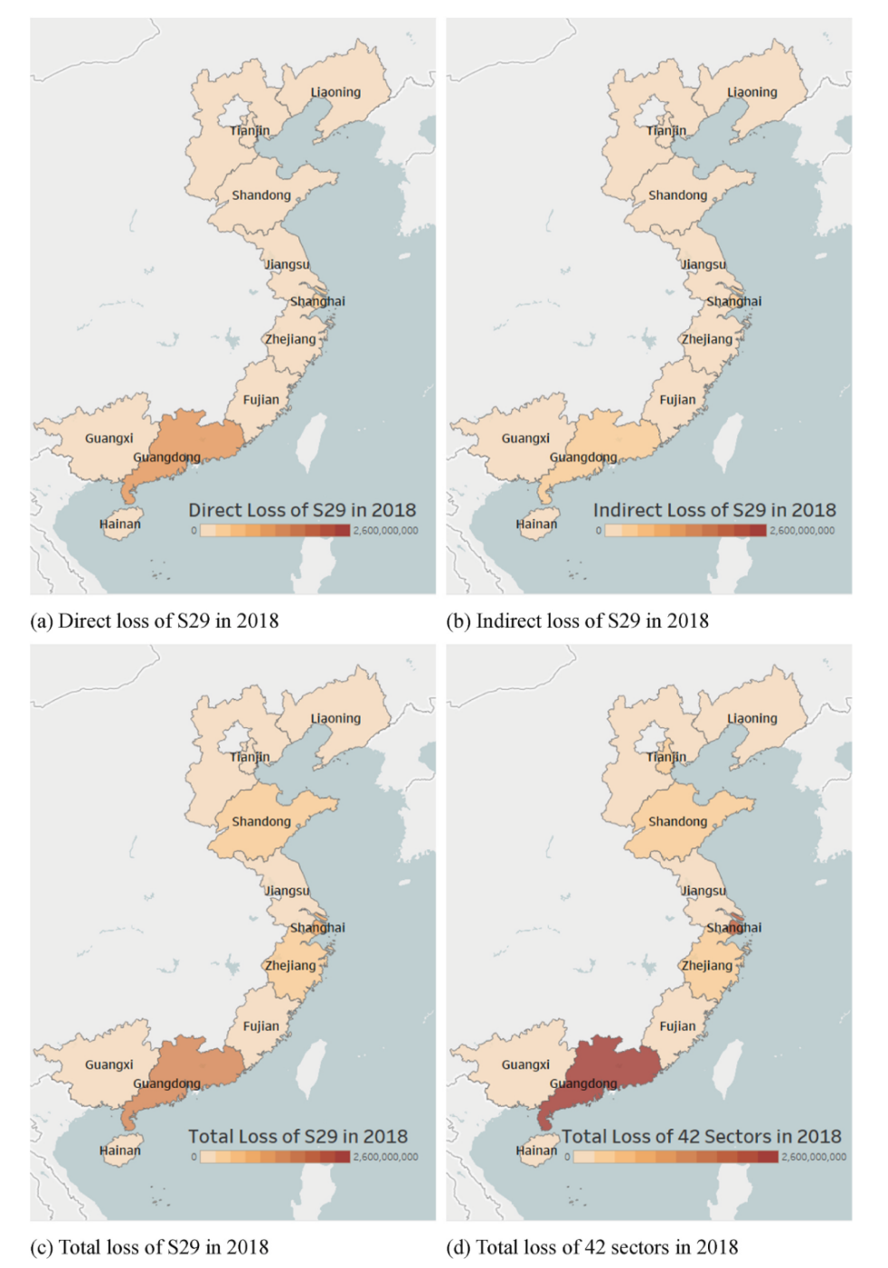 图7 2018年台风下沿海省(市)的经济损失