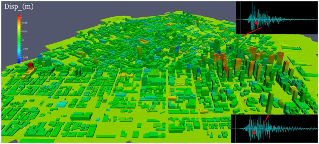(a)旧金山市区在地震作用下建筑动力响应模拟