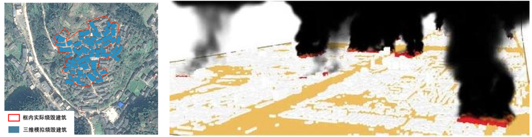 基于热辐射和热羽流的火灾蔓延模拟方法和基于流体力学的烟气扩散模拟方法,并与城市抗震弹塑性分析方法结合进行地震次生火灾模拟;