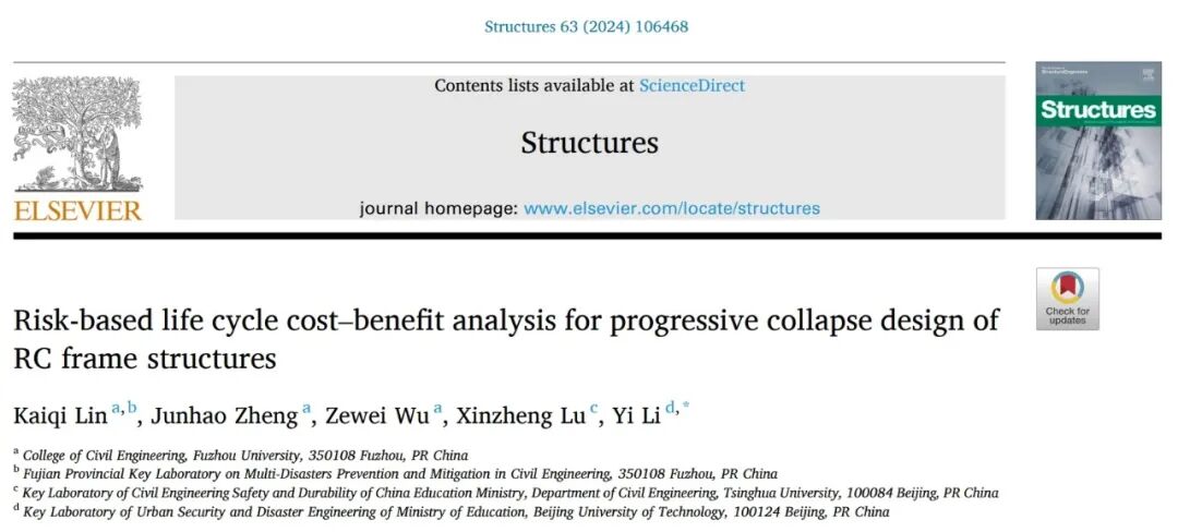 论文:Risk-based life cycle cost–benefit analysis for progressive collapse design of RC frame structures. Structures. 2024.