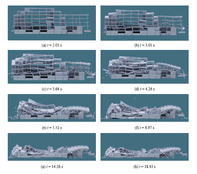 图1 某真实复杂图书馆倒塌全过程模拟