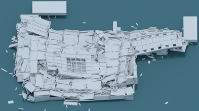 1. 2020年,我国南方某钢结构倒塌事故倒塌过程和废墟分布模拟。