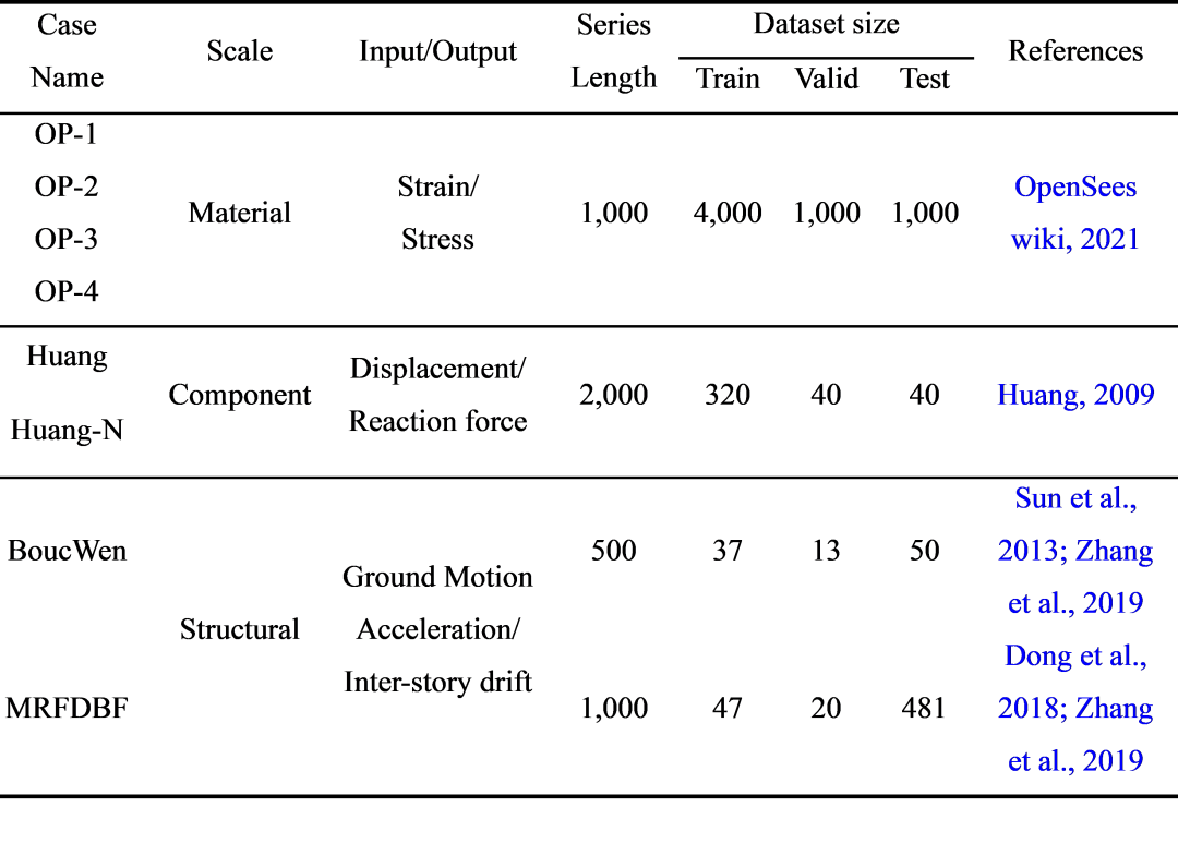 目前,已经有大量学者提出了可用于结构(构件/材料)响应时程预测的深度学习模型。为了给该领域内神经网络模型的选择提供参考,并开展网络架构进一步优化,本研究开展了以下工作: