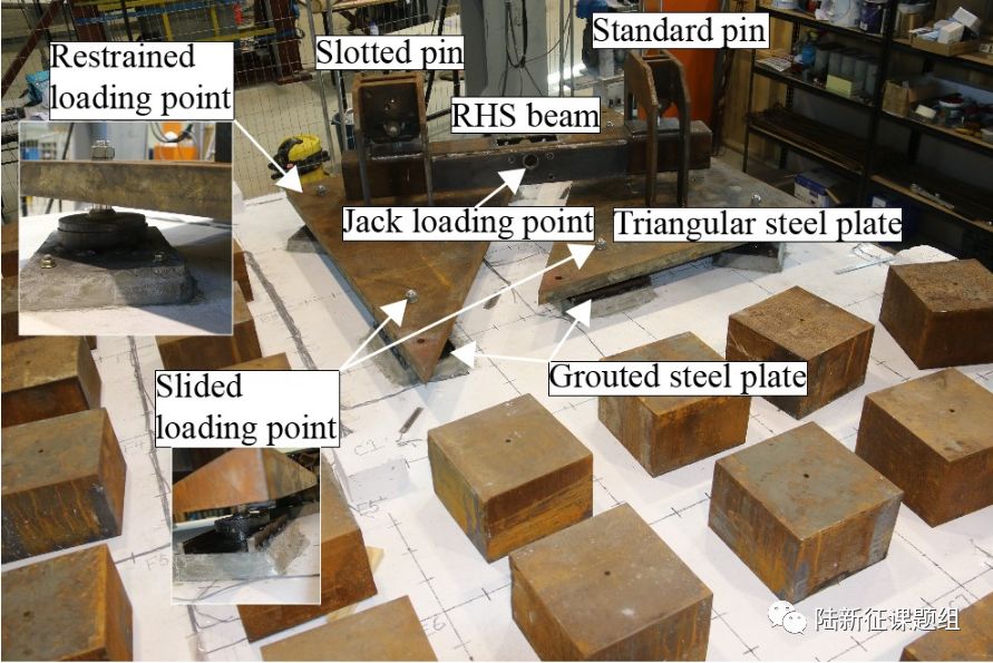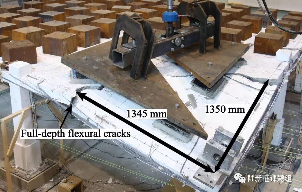 为了研究平板结构在初始破坏后,剩余结构的承载能力、破坏形态和内力的重分布情况,2015年,由澳大利亚格里菲斯大学和清华大学一起申请到澳大利亚ARC的资助。课题组分别在澳大利亚黄金海岸和北京展开了系列试验和数值模拟研究。目前,在澳大利亚格里菲斯大学已经完成了平板子结构拆除中柱、边柱,角柱和多柱的连续倒塌试验研究。本文主要对拆除角柱的试验进行介绍。