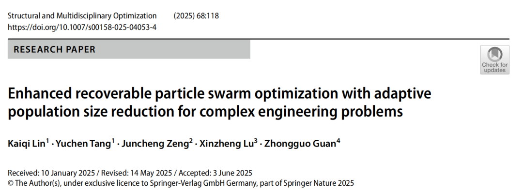论文:Enhanced recoverable particle swarm optimization with adaptive population size reduction for complex engineering problems. Structural and Multidisciplinary Optimization. 2025.