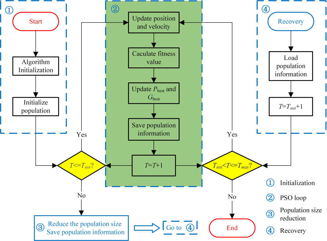 将粒子缩减程序集成于可恢复粒子群算法,实现优化计算过程中可按照既定的时机以及缩减粒子方法动态调控粒子数量,即计算资源的调控。