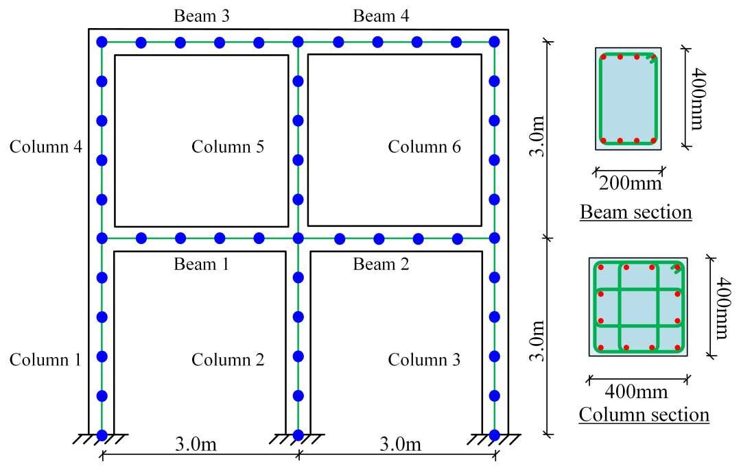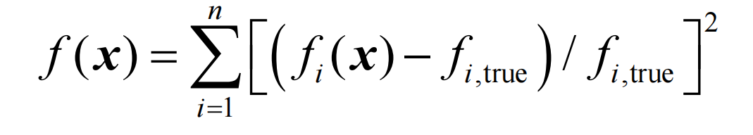 以一个平面框架结构为例,通过优化结构中梁/柱的弹性模量,匹配损伤结构的模态频率,从而识别损伤位置,目标函数如下式所示: