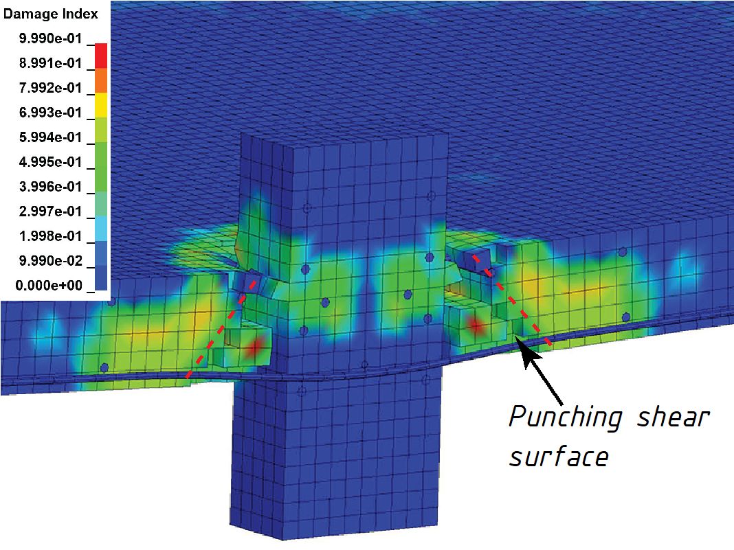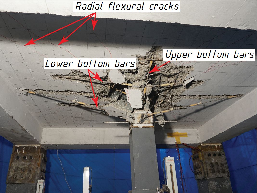 1. 板柱节点的弯曲行为不受冲切破坏面发展的影响,但最终的冲切破坏取决于板柱节点的受弯变形能力。