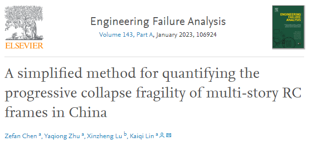 论文:A simplified method for quantifying the progressive collapse fragility of multi-story RC frames in China. Engineering Failure Analysis . 2023.