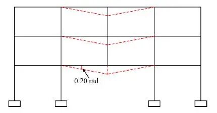 根据美国国防部标准(DoD 2016)建议,采用“拆除柱处的梁柱节点最大位移超过梁端弦转角达到0.20rad时对应的位移”作为结构发生连续倒塌的失效判定准则。