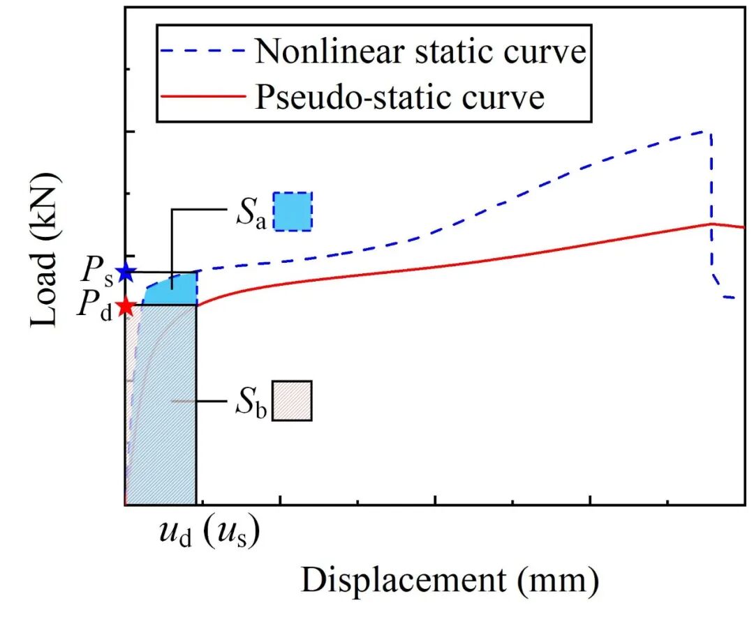 基于式(1)将Step3中得到的Ps-us曲线转换为拟静力响应曲线(Pd-ud曲线,图3红色实线)。