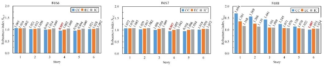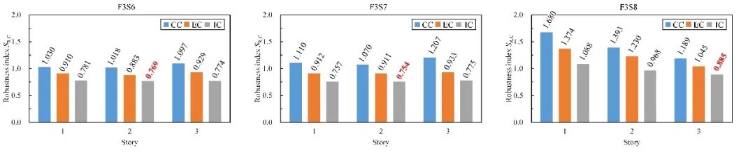 图8 3/6/8层RC框架构件鲁棒性指标