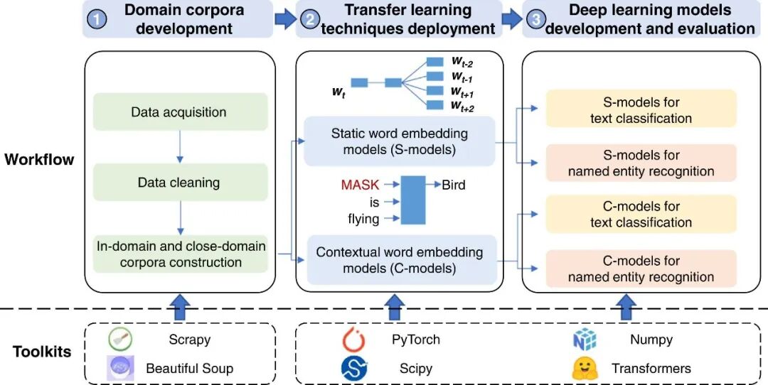图1 领域语料与预训练方法增强深度学习模型的技术路线