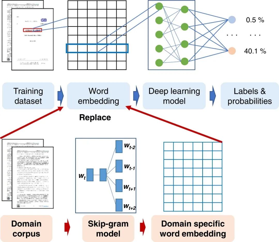 图2 建筑领域特定静态词向量模型增强深度学习模型的方法