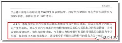 所以,面对超高车辆撞击引发的问题,我们除了要提高交通管理的水平,在桥梁设计时合理考虑撞击作用也是需要的。而我国2004版《桥规》虽然对撞击荷载做了规定,但是主要是参考国外规范,缺乏基于我国实际情况的研究基础,且条文规定也相对比较简单(图4)。国内外对这个问题的研究积累也很少。