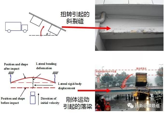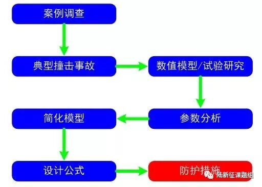 (2) 对可能被撞坏的桥梁,桥梁如果受到撞击,将遭受多大的撞击荷载?既有桥梁,如何防护或加固可以抵抗撞击荷载?新建桥梁,如何设计才能抵抗撞击破坏?