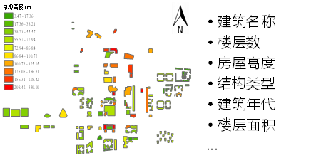 本章规定了建筑数据应包含建筑属性数据,宜包含建筑外形数据。其中建筑属性数据宜包括:建筑名称、楼层数、房屋高度、结构类型、建筑年代、楼层面积、建筑使用功能、位置信息、建筑加固与改造情况等(图3)。