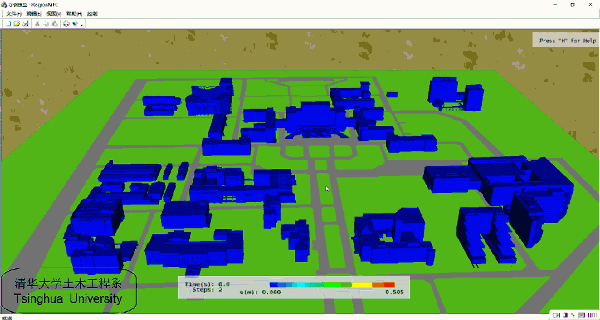 3.程序可以给出清华整个校园的模拟结果(如最开始的动画),但是因为程序对电脑的配置要求很高,所以这里只给出了部分建筑的信息,提供一个示例。如果需要包含更多建筑的模型,请和程序作者联系。