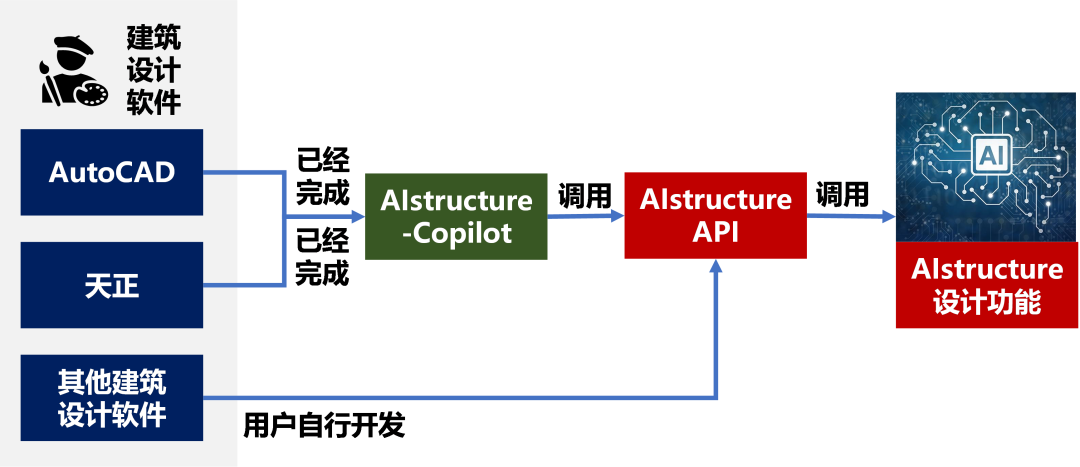 我们开放了AIstructure的API接口,开发工程师可使用自己习惯的建筑设计软件进行二次开发,按照API的接口标准调用AIstructure的API,就可以完成智能结构设计,从而更好的服务不同用户的设计流程。