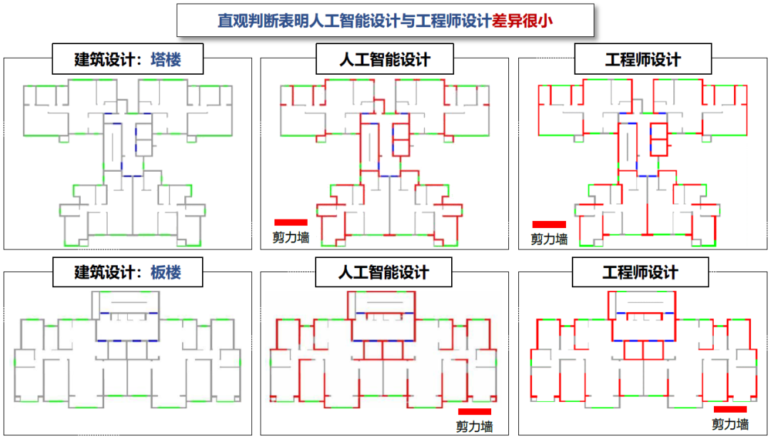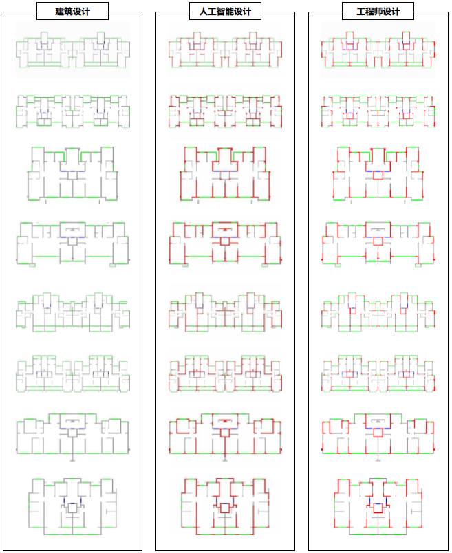 采用该方法,我们对多个建筑设计进行了案例的应用验证,部分典型结果如图8所示。可以看到,该方法完成的结构设计,与工程师设计的结果差异是非常小的。我们还邀请了部分专家对人工智能设计与工程师设计的结果进行判断和打分,结果表明,AI设计几乎可以以假乱真(图9)。