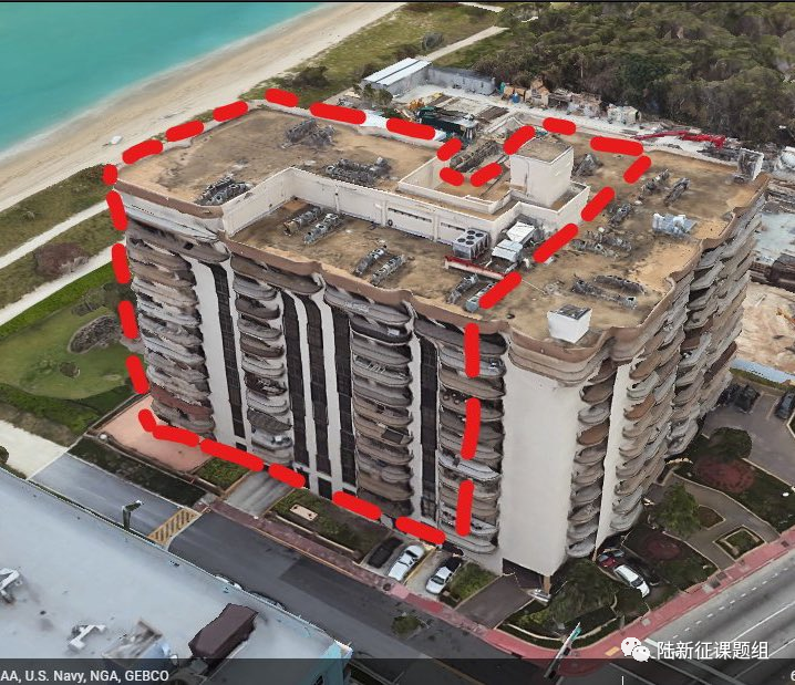 红色为倒塌范围(资料来源https://twitter.com/GirlsDwt/status/1407988885297274881)