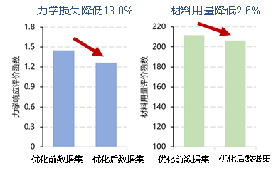 优化以后案例库中力学损失降低了13%,结构的材料用量平均下降了2.6%。
