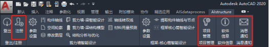 根据用户反馈,我们不断完善操作界面,用“功能栏”代替了“菜单栏”,方便操作,同时集成了登录、注册、项目管理等功能,用户可在CAD界面中完成全部的操作,无需再登录官网,如下图所示。