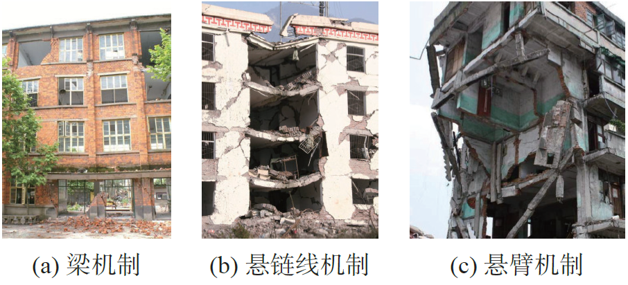 同时,通过观察实际震害或者极端灾害中结构的各种倒塌模式,可以发现结构在发生严重初始破坏后,仍可以通过各种不同的受力机制抵抗倒塌,例如,“梁机制”、“悬链线机制”、“悬臂机制”等(图5)[65],在设计中充分考虑这些机制的贡献,也可以提升结构体系的抗倒塌鲁棒性。