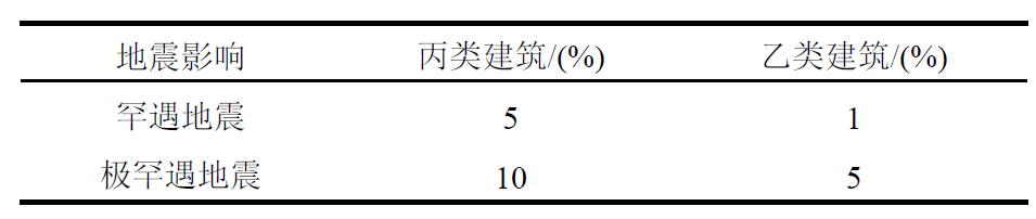从图中可以看到,随着设防烈度提高,中等以上的破坏率从64%下降到31%。虽然我们希望减少地震带来的破坏,但提升设防烈度需要增加建设成本。因此,为了平衡成本和性能要求,有必要开展地震可接受水准的相关研究,确定地震作用下可接受的破坏水平或倒塌概率。例如,现行的《建筑结构抗倒塌设计标准》(T/CECS 392-2021)[148]中,就规定了罕遇地震和极罕遇地震下的结构可接受最大地震倒塌概率(表3),可以作为地震倒塌性能研究的指标。