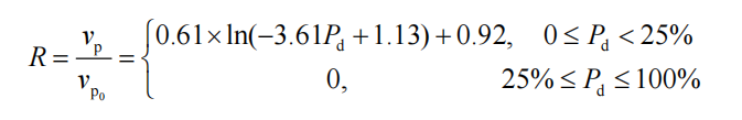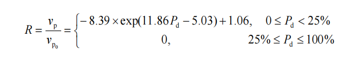 其中,R为速度折减系数;vp为人员的速度(m/s);vp0为无坠物情形下人员的速度(m/s);Pd为人员行经区域的障碍物占比。