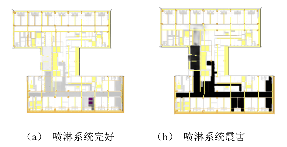 (2) 地震次生火灾虽然已经研究多年,但是现代建筑大量依靠喷淋的消防设施降低火灾风险。而地震后喷淋设施破坏会显著加剧火灾后果,而目前喷淋设施破坏对建筑抗火能力以及灾后疏散能力影响的研究还非常不足,仍需进一步考虑房间布局、喷淋系统与防火门等消防设施的破坏,建立更精确的火灾蔓延模型。
