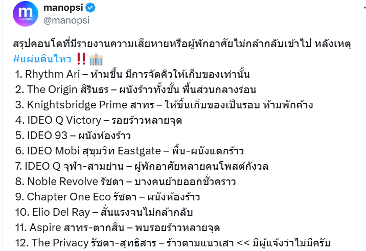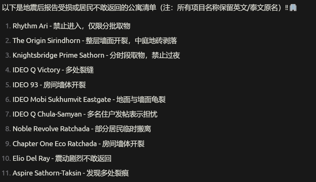 图1 泰国网民统计的受损公寓清单