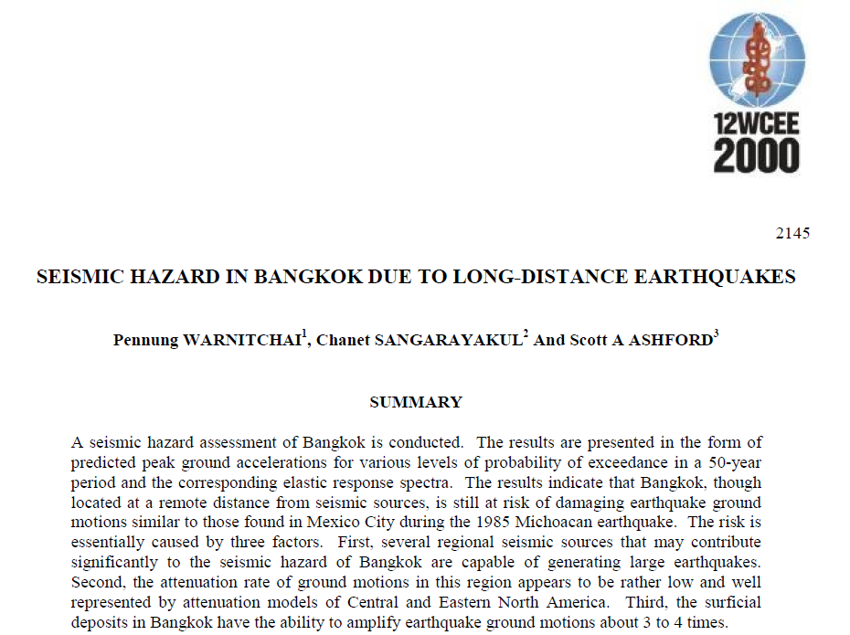 早在2000年,泰国的Pennung Warnitchai教授等就曾发表论文,研究远距离地震对曼谷的影响。