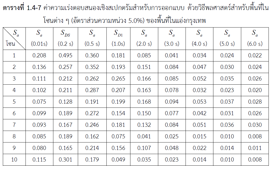 以曼谷市中心地区(5区)为例,其设计反应谱如下所示