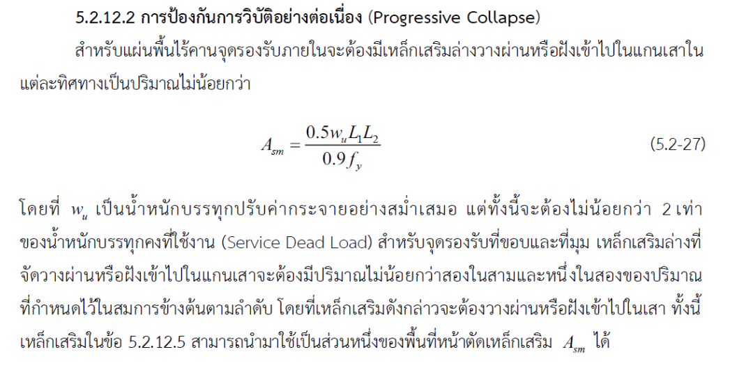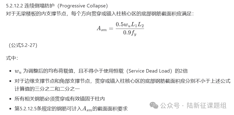 在这本规范中,我还发现泰国还专门对板柱结构的抗连续倒塌问题做了设计要求。根据北京工业大学李易教授考证,该公式估计来源于美国国防部连续倒塌设计规程,只是对公式的参数做了一些微调。