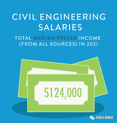 2022年11月1日,美国土木工程师协会(ASCE)照例发布了年度从业人员薪资调查结果(2022 ASCE Civil Engineering Salary Report)。统计结果表明,2021年美国土木工程师的税前收入中位数为12.4万美元。