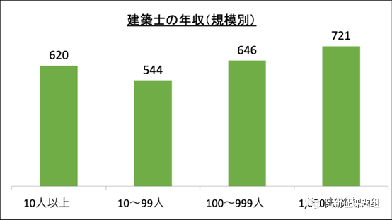 统计报告还给出了不同规模企业的收入差异,基本上企业规模越大,收入越高,1000人以上大企业的收入可以达到721万日元。