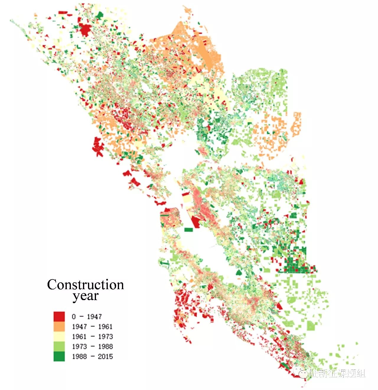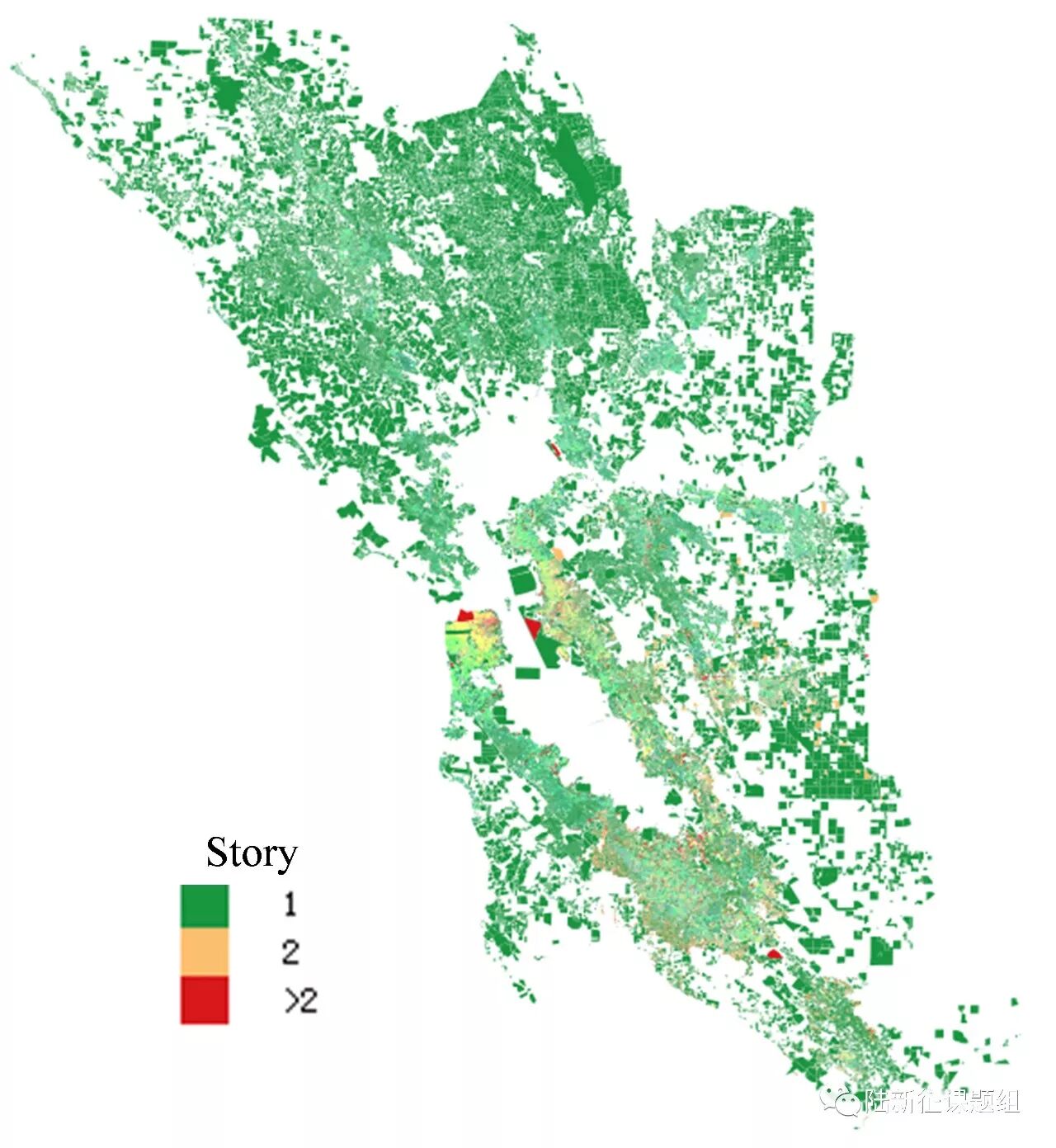 与此同时,加州伯克利大学和清华大学团队共同完成了分析对象区域1,843,351栋建筑的数据整理工作(图12和图13)。(花絮:由于建筑数量太多,ArcGIS软件悲催死机,我们不得不另找解决途径GIS平台问题)