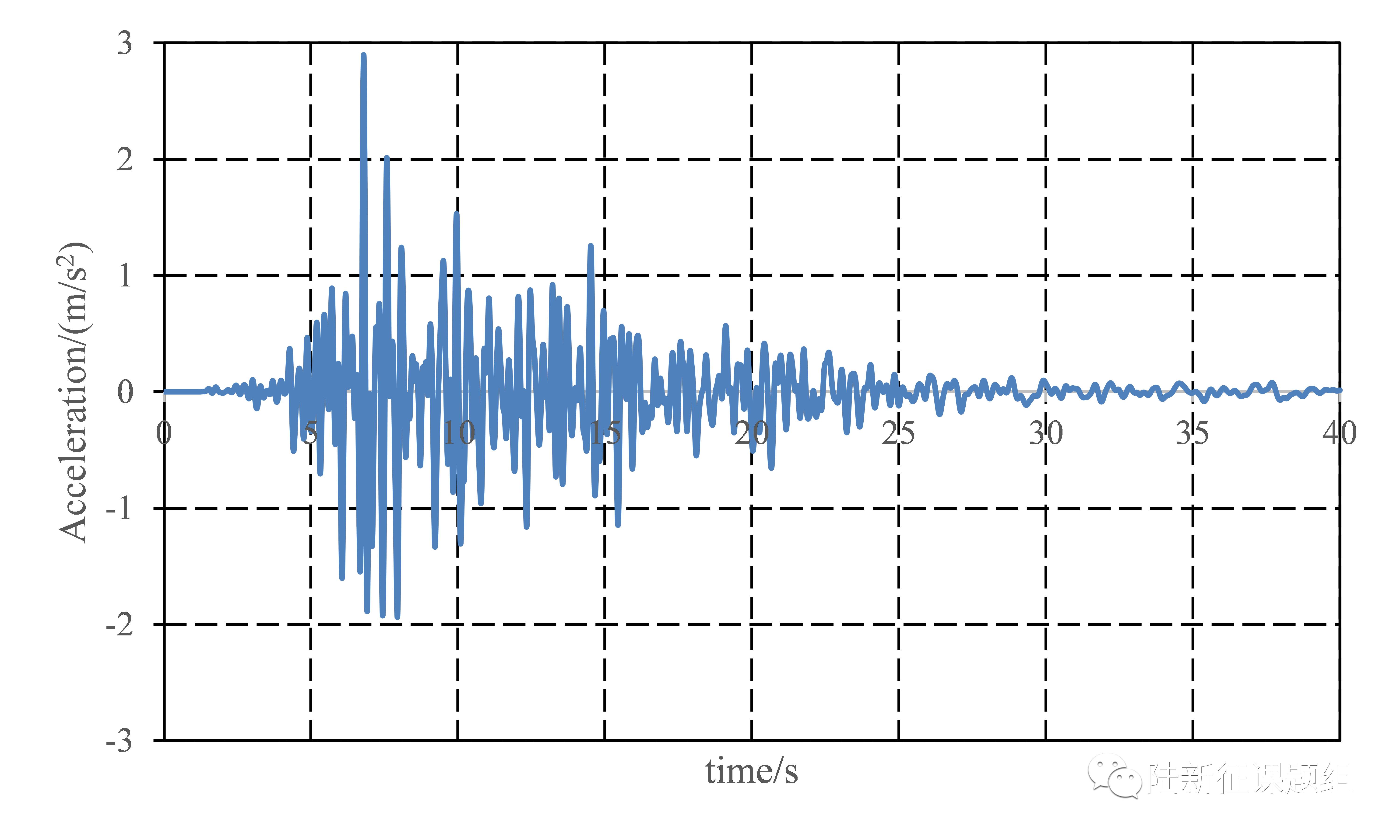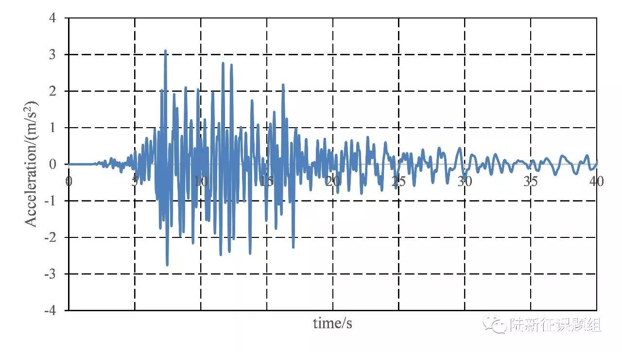 首先根据不同建筑的实际位置,将劳伦斯-伯克利国家实验室模拟得到的不同地点的地震动输入相应的建筑物,图14a给出了旧金山泛美大厦(Transamerica Pyramid)输入的地震动时程记录(网格点S_27_28),图14b给出了旧金山One Rincon Hill输入的地震动时程记录(网格点S_28_28),图15为每栋建筑输入的PGA的分布。