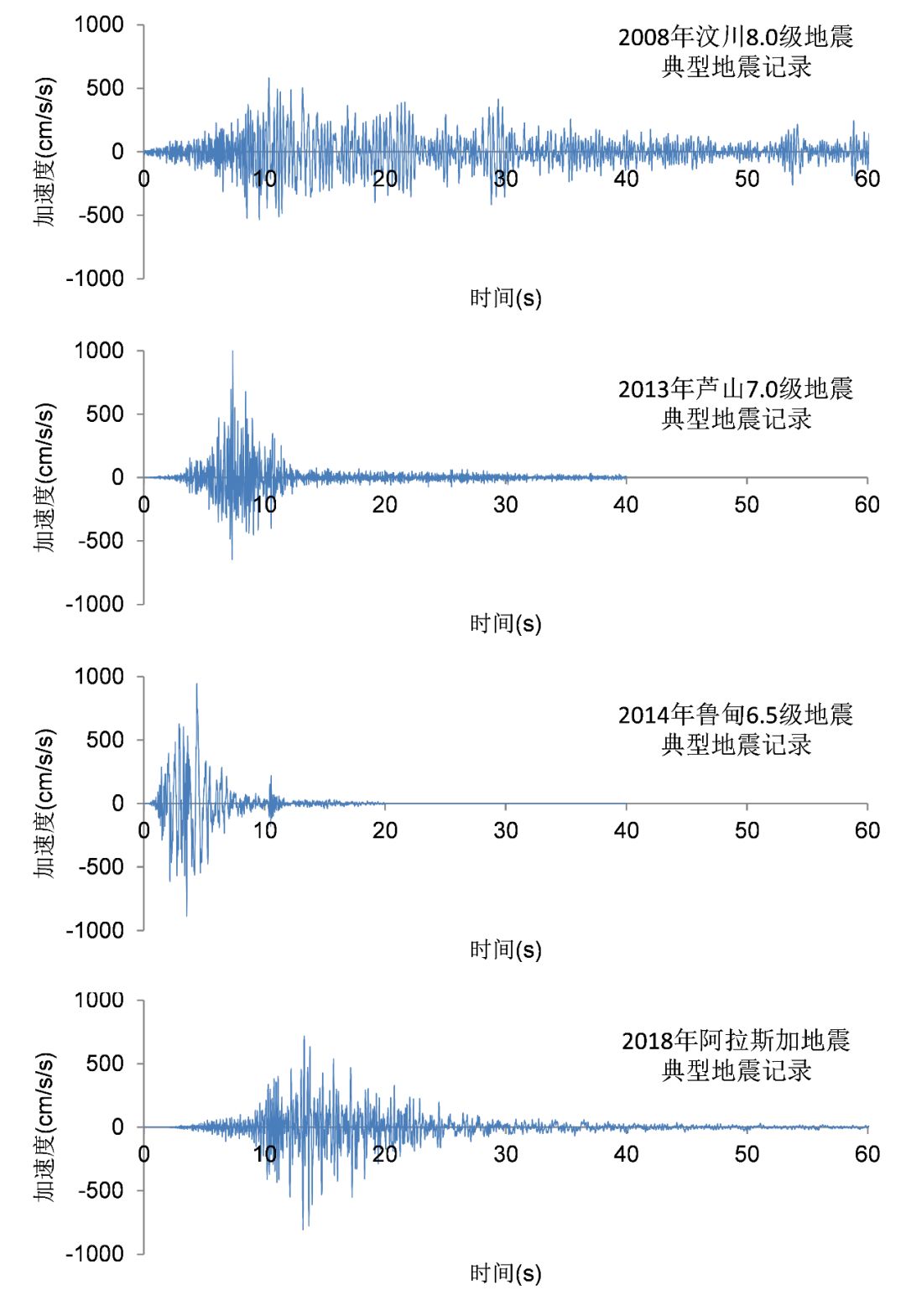 图3 阿拉斯加地震典型地面运动记录与近年来我国典型强震记录对比