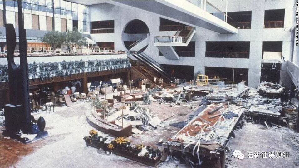 Hyatt Regency酒店二楼和四楼的廊桥在客人的重力作用下发生坍塌。然后恰好砸到了大厅里拥挤的舞池。美国土木工程师协会称这是“在生命损失方面,美国历史上最具破坏性的结构失效之一”。