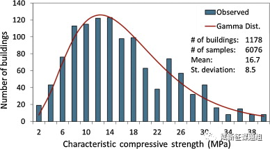 在土耳其最近发生的大地震中,大规模建筑破坏有许多原因。其中,建筑材料质量差几乎总是被列为严重损坏或倒塌建筑物的重要诱因。当前的抗震规范规定地震带的建筑使用的混凝土的最小特征(characteristic)抗压强度为 20 MPa。然而,在 2000 年之前建造的建筑物中,大多数混凝土都是现场搅拌的,混凝土强度低于这一最低要求,甚至低于 10 MPa 并不少见。图 7 显示了从伊斯坦布尔及周边城市 2000 年之前建造的大量钢筋混凝土建筑中获得的混凝土样品的特征抗压强度分布,这些建筑大多使用现场搅拌混凝土。结果表明,超过三分之二的建筑的混凝土抗压强度低于最低要求(20 MPa)。混凝土强度为 8 MPa 或以下的建筑物的百分比为 21.3%,相当于约 135,000 座建筑物。更令人担忧的是,混凝土强度为 4 MPa 或以下的建筑物的百分比为 5.3%,相当于该地区近 34,000 座建筑物,这清楚地表明了大地震可能给该区域造成的破坏规模。