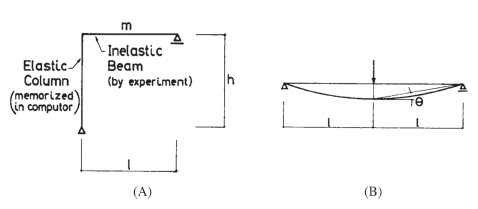 图3 第一次混合模拟:(A)将要重现地震响应的子组件;(B)代表子组件的梁的试件(来自Udagawa等[4])