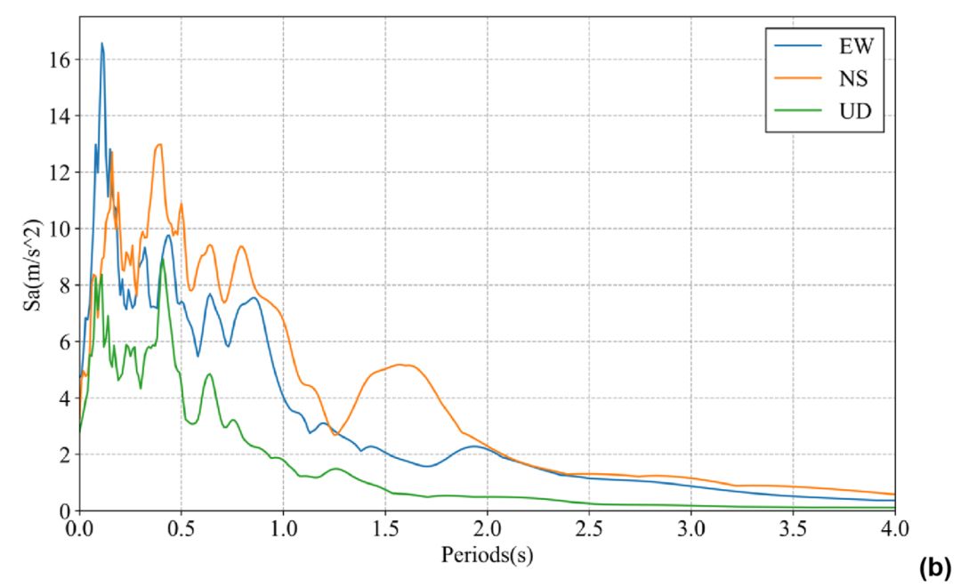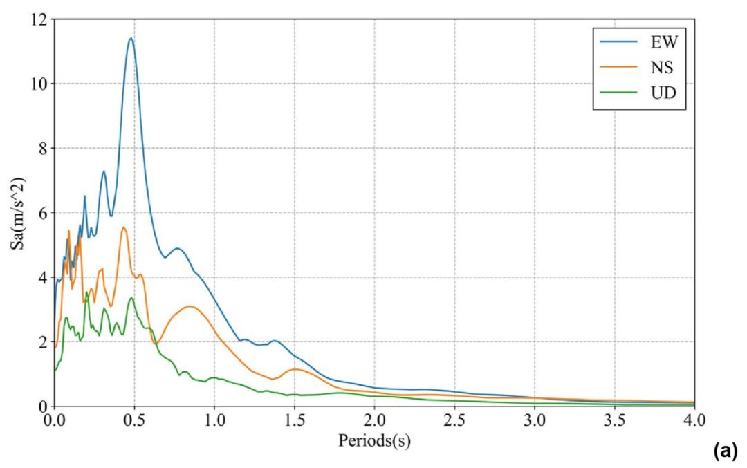 图3(a)6.4级地震事件和(b)7.1级地震事件的CCC台站地震动记录的5%阻尼反应谱