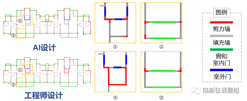 但是,人类工程师在完成整体设计后,还会集中注意力对关键部位(例如电梯井附近)进一步进行深入设计。因为AI缺少了这样一个关键部位的深入设计过程,导致AI设计的局部细节有时不够理想。