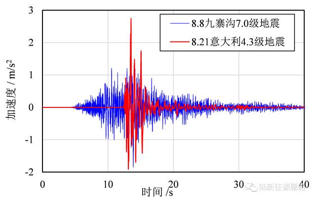 图3 0808九寨沟7.0级地震和0821意大利4.3级地震震中附近加速度时程对比
