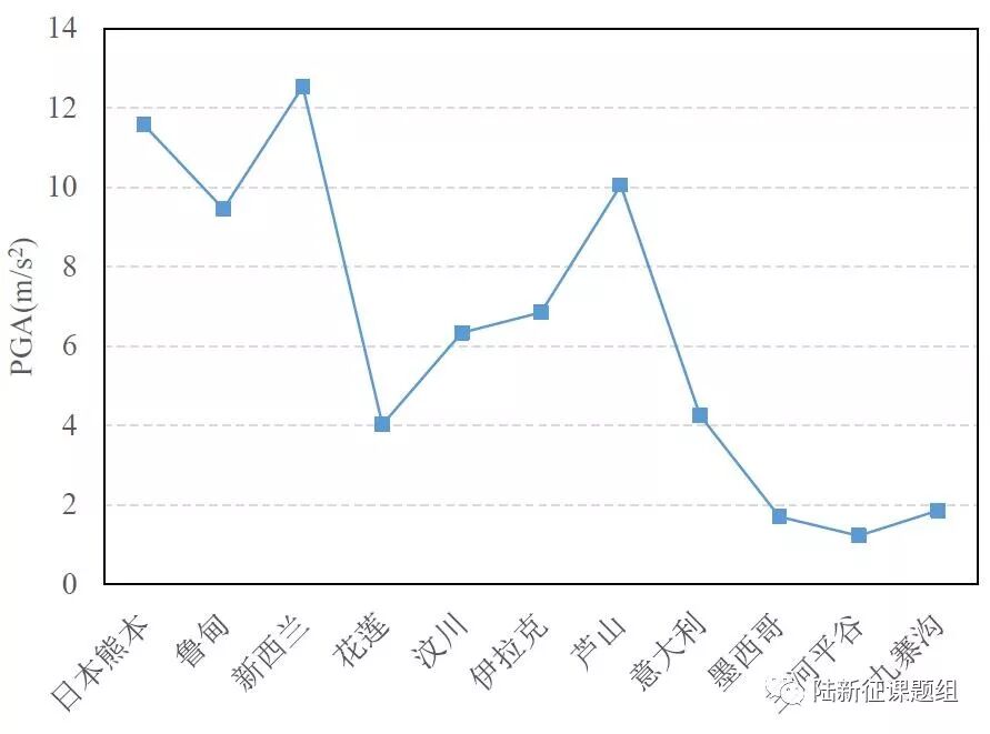 其实现行系统之所以预测误差较大,主要原因是用于做预测的数据严重不足。由于过去技术手段的限制,地震后大家能够获取的信息非常有限,往往只有震级、震中位置和震源深度这三个数据。而后,就需要根据这些非常有限的数据,预测震中附近的地面运动强度,再预测建筑物的破坏以及人员伤亡和经济损失。比如,一个比较简单的方法就是把震级加1.5-2.0,就可以得到震中附近的烈度(关于烈度和震级的关系,可以参阅我们之前的文章:为什么需要发展城市抗震弹塑性分析 | 从8.8九寨沟地震和8.21意大利地震谈起)。按照这种预测方法,一次6.5级地震震中附近烈度可能在8度左右。显然,这样的估计是非常粗糙的,有时甚至是错误的。比如,这次0216墨西哥地震,震级是7.1级,但是震中附近测到的地面运动峰值加速度只有0.18g。而10天前发生的0206花莲6.5级地震,震中附近测到的地面运动峰值加速度却达到了0.402g。而2017年8月21日在意大利发生的4.3级地震,震中附近测到的地面运动峰值加速度也达到了0.271g。由此可见,仅仅通过震级这一个指标来预测震中附近的破坏能力大小,实在是有些力不从心。