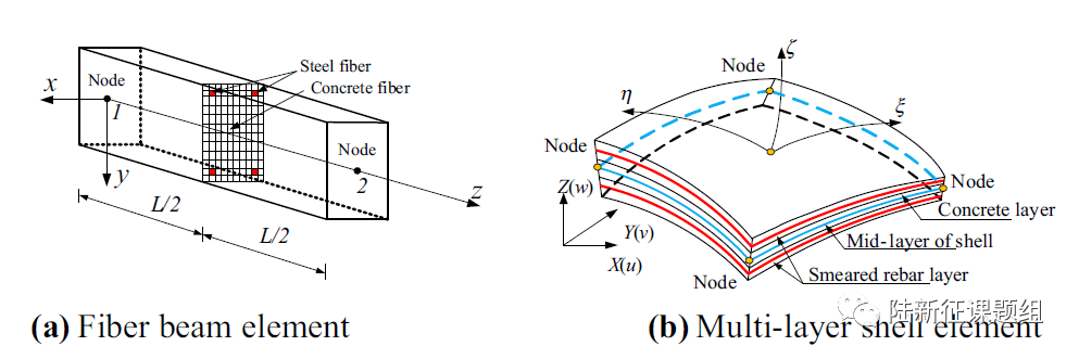 此外,我们还开发了可以用于整体结构火灾热-力耦合非线性行为模拟的纤维梁和分层壳单元(图2)。