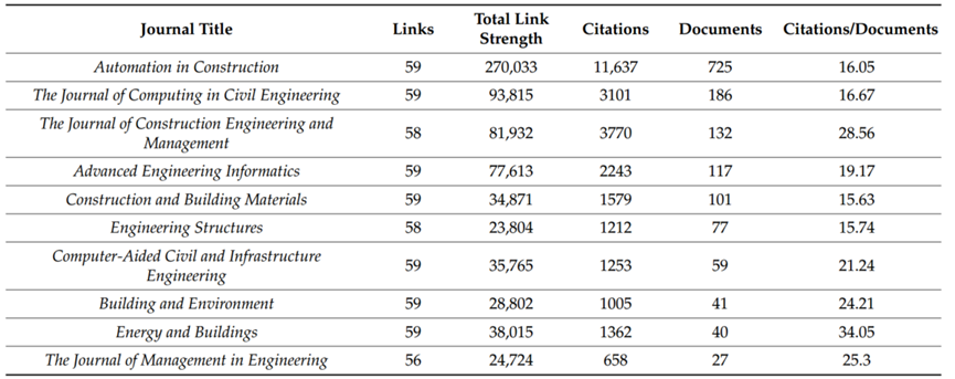 表2 智能建造领域典型期刊引证数据分析