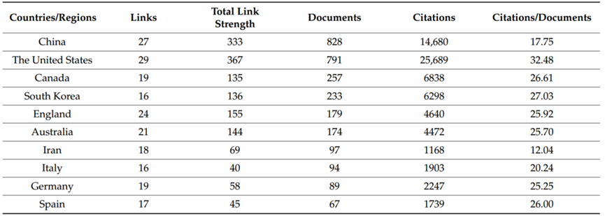 表3 各国论文发表及引证情况